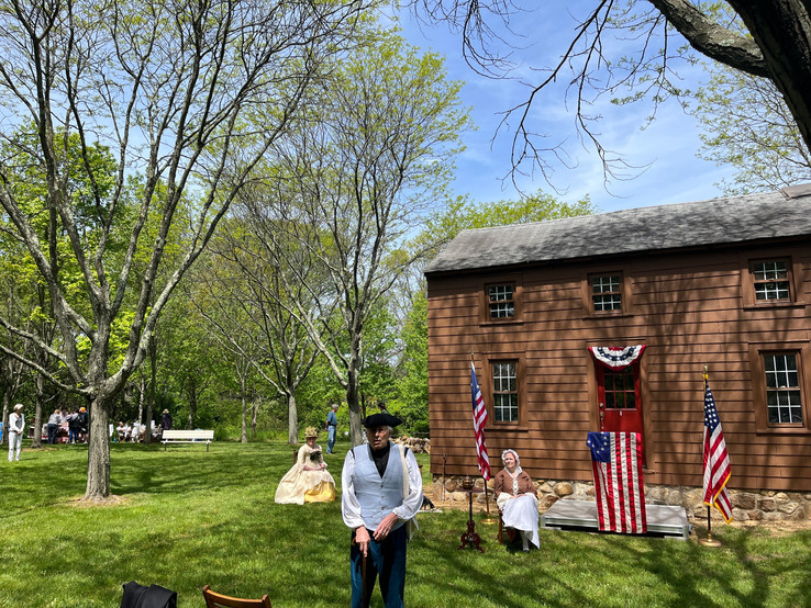 The Color Guard was led by the Sons of the American Revolution and BSA Troop 52. Mayor Ferrante read a Proclamation about the 1713 East Jersey Cottage. Then Ann and Vincent Bodine, owners of the cottage during the American Revolution and portrayed by Peter Wise and Lynn Lakner, greeted the community.
